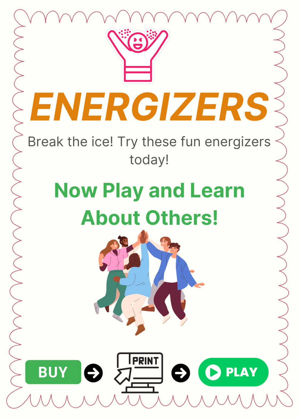 Bring energy and excitement to your classroom, youth group, or organization with this collection of fun, interactive, and easy-to-follow energizers! Whether you're a teacher, youth worker, or facilitator, these activities are perfect for breaking the ice, boosting teamwork, and engaging kids and young people of all ages.